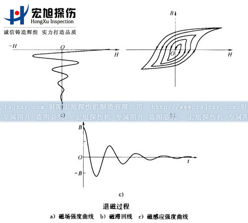退磁的效果与所用的退磁设备有关。首先,要求设备在开始时就必须有足够高的磁场强度.,以便克服工件中剩磁所对应的矫顽力,使得剩余磁场方向反转。也就是说,要用较高强度的磁化电流作周期性变换来达到退磁的目的;其次,要求退磁装置在每个磁化周期,都必须逐渐的减小磁场强度以适应矫顽力的变化。